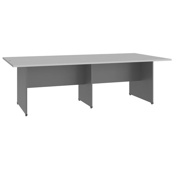 Bàn họp HPH2412CN được làm toàn bộ từ gỗ công nghiệp phủ melamine cao cấp màu ghi sáng, mặt bàn liền hình chữ nhật, tạo nên sự đơn giản và thanh lịch trong không gian. Bàn có 3 chân gỗ, không đợt chắc chắn.