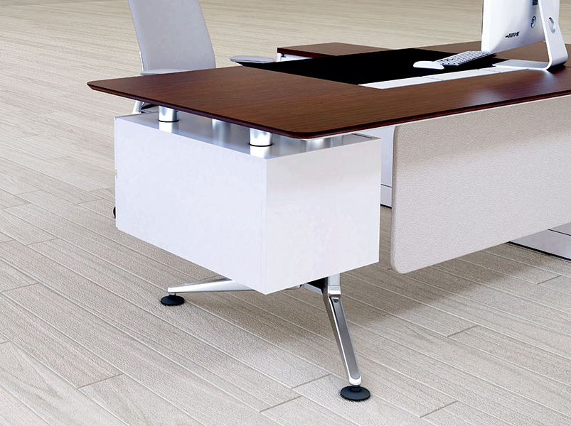 Bàn giám đốc K2110E-VR làm bằng gỗ Veneer có tủ phụ bên phải. bàn làm việc được trang bị sẵn hộp kỹ thuật