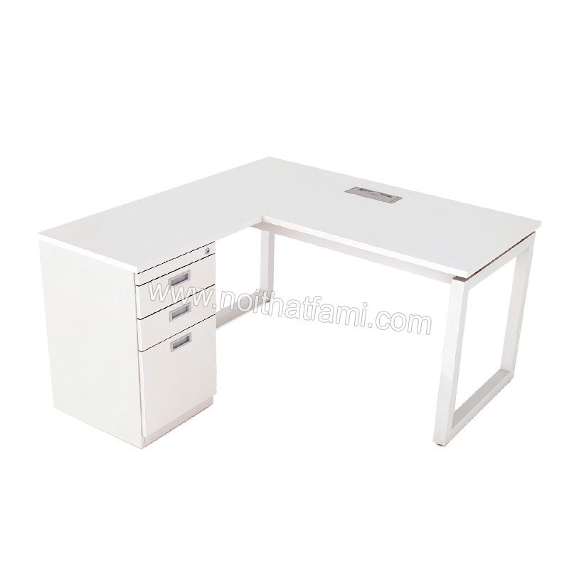 Bàn làm việc chân sắt OV1414SL1-L có hộc trái, khung sắt chắc chắn kết hợp gỗ công nghiệp MFC phủ Melamine Hàn Quốc chống trầy xước, chồng thấm nước, dễ lau chùi