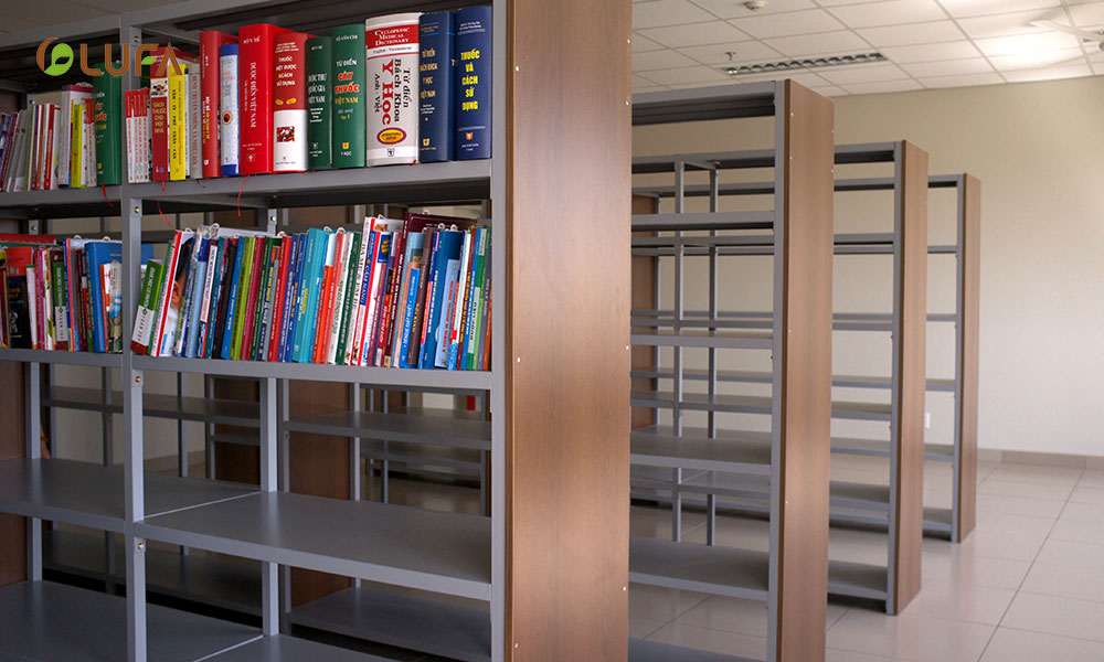 Thư viện là nơi chứ rất nhiều tài liệu cần thiết cho quá trình học tập và nghiên cứu của sinh viên và không ngừng gia tăng về số lượng.Thế nhưng, với thiết kế khoa học và sáng tạo, không gian thư viện vẫn luôn thoáng đãng với các tủ sách cao cấp được bố trí đẹp mắt. Cùng với đó là không gian tự học và học nhóm của sinh viên cũng rất ấn tượng không kém với những chiếc bàn gỗ cao cấp và hệ thống ghế đỏ ghế đen làm từ lưới da được sắp xếp khoa học, tạo không khí thoải mái và cảm hứng học tập cho sinh viên.