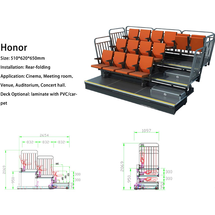 Vận hành tự động thông minh: Hệ thống ghế có thể mở ra hoặc đóng lại dễ dàng bằng mô-tơ điều khiển từ xa, giúp thay đổi không gian linh hoạt mà không tốn công sức.