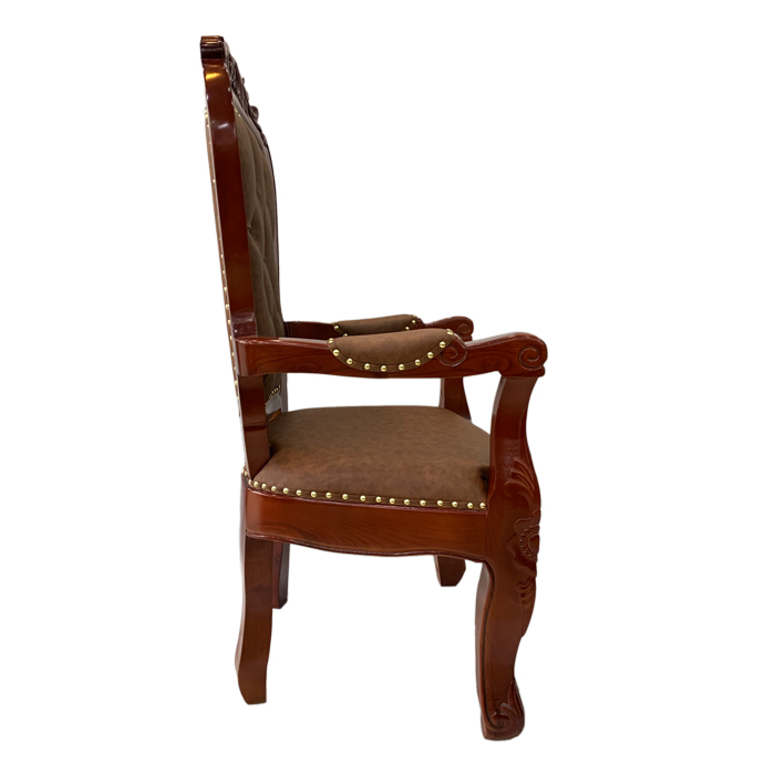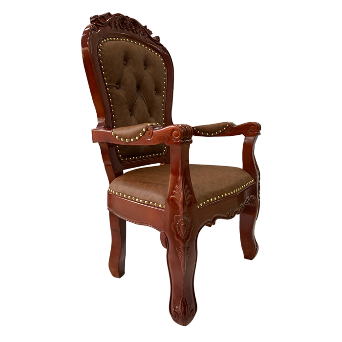 + Tay ghế thiết kế cách điệu, phần khuỷu tay bọc da, tạo điểm nhấn cho sản phẩm