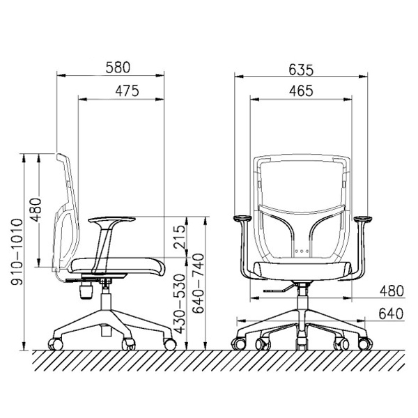 Kích thước: W635 x D580 x H910-1010 mm