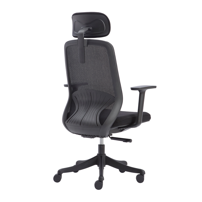 - Tay ghế làm bằng nhựa, thiết kế hình chữ T cách điệu mang lại sự hiện đại cho không gian văn phòng.