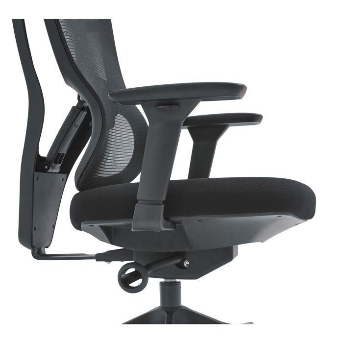 - Tay ghế làm bằng nhựa, thiết kế hình chữ T cách điệu mang lại sự hiện đại cho không gian văn phòng.