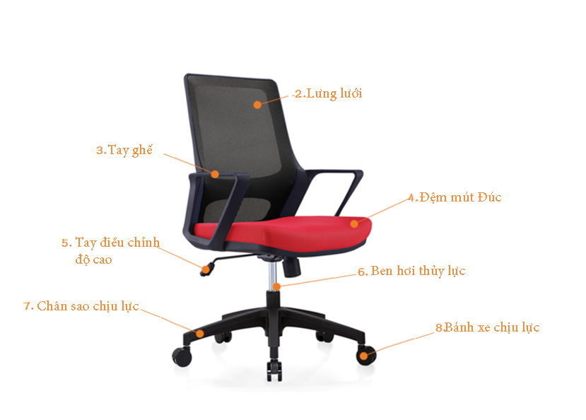 - Ghế có thể nâng hạ chiều cao nhờ sử dụng bộ pistong khí nén