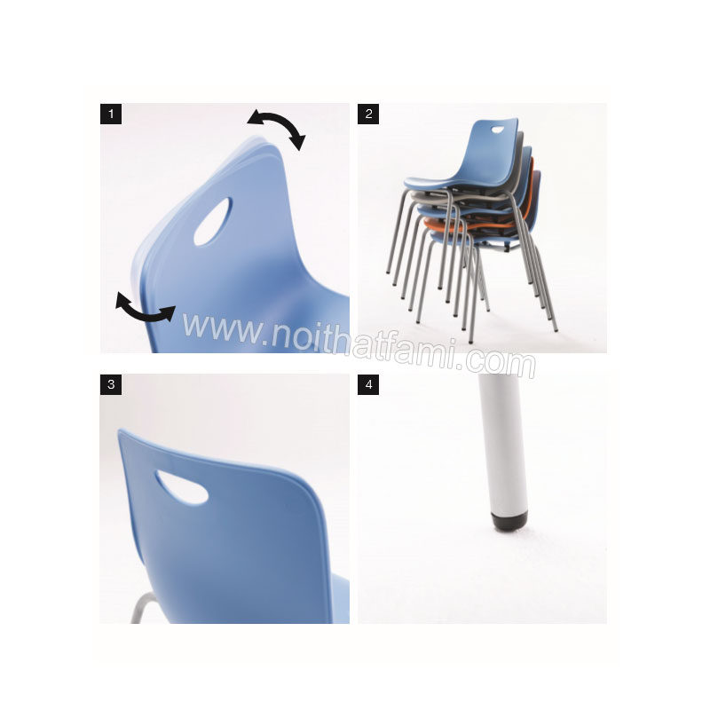 Ghế tựa chân tĩnh JX4200K sử dụng khung thép ống Ø19 được mạ CR-Ni. Đệm tựa ghế làm bằng nhựa đúc mang phong cách sang trọng.