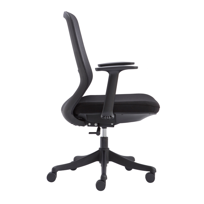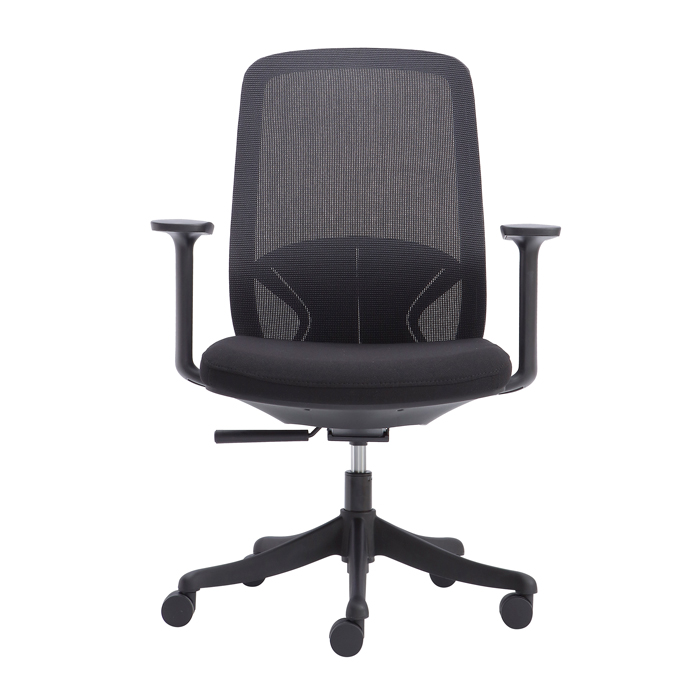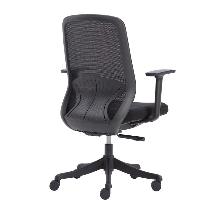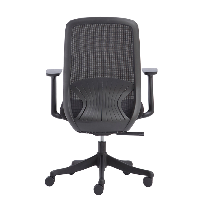 - Tay ghế làm bằng nhựa, thiết kế hình chữ T cách điệu mang lại sự hiện đại cho không gian văn phòng.