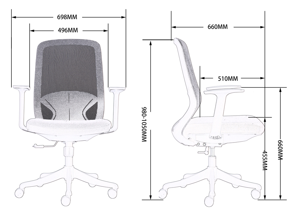 Kích thước chi tiết ghế lưới FMX616