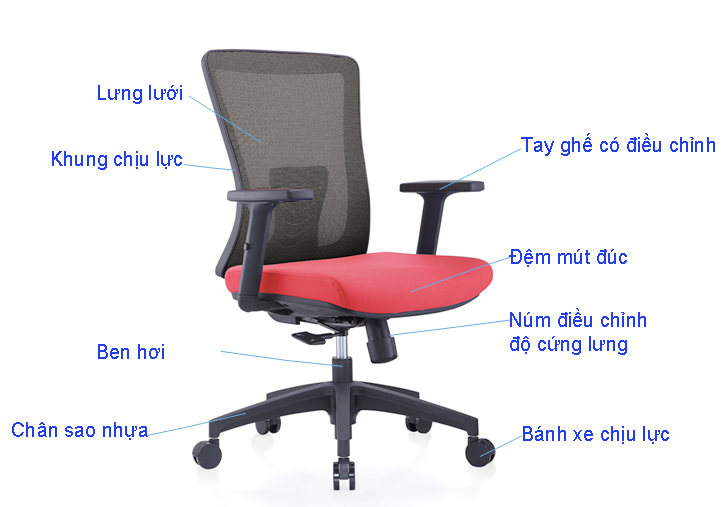 - Đệm ngồi thân ghế được bọc vải lưới xốp thoáng mát