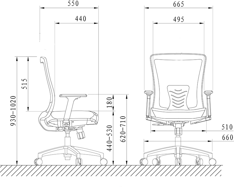 Kích thước: W665 x D550 x H(940-1020) mm