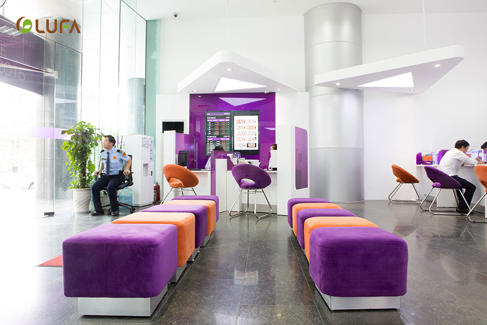 Ngoài yếu tố về công năng, tính thẩm mỹ trong thiết kế nội thất văn phòng được hiểu như nét đẹp trực quan mà thiết kế mang lại khi đặt mình vào văn phòng. TP Bank lấy màu tím là màu chủ đạo và màu cam là màu xen kẽ, vì vậy trong quá trình thiết kế và lắp đặt các sản phẩm nội thất văn phòng LUFA luôn luôn lưu ý điều này. Vì vậy LUFA đã tạo nên sự kết hợp hài hòa giữa màu sắc chủ đạo của TP Bank và sự sáng tạo kiểu cách của các vật dụng nội thất văn phòng.