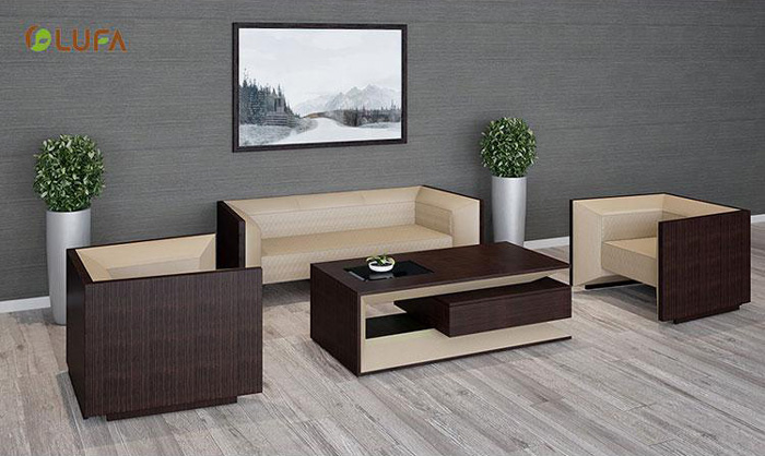 - T- Sofa chất liệu da PU, gỗ verneer sơn phủ PU.