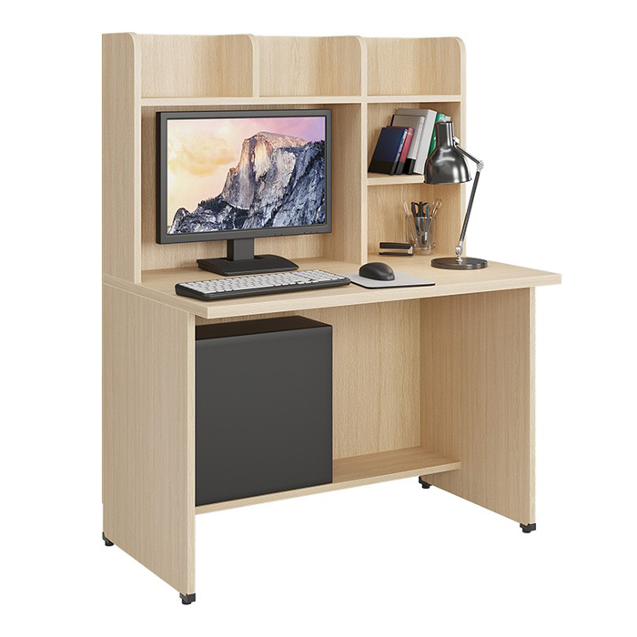 Mặt bàn được trang bị hệ thống giá để đồ tiện lợi, giúp tổ chức và sắp xếp đồ dùng học tập một cách dễ dàng và ngăn nắp.