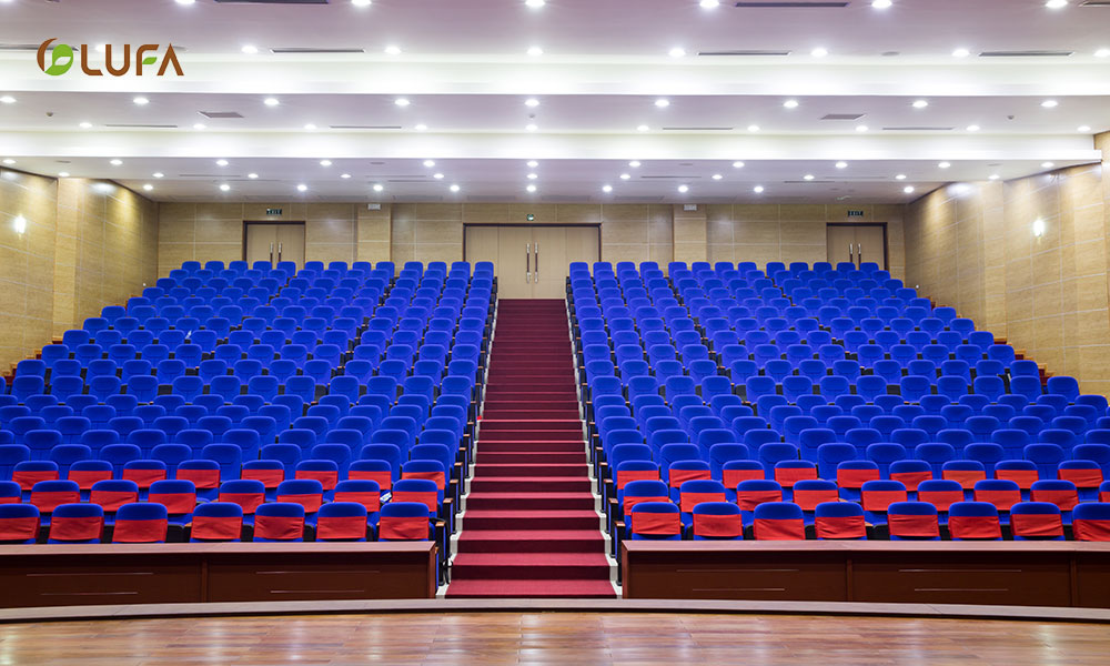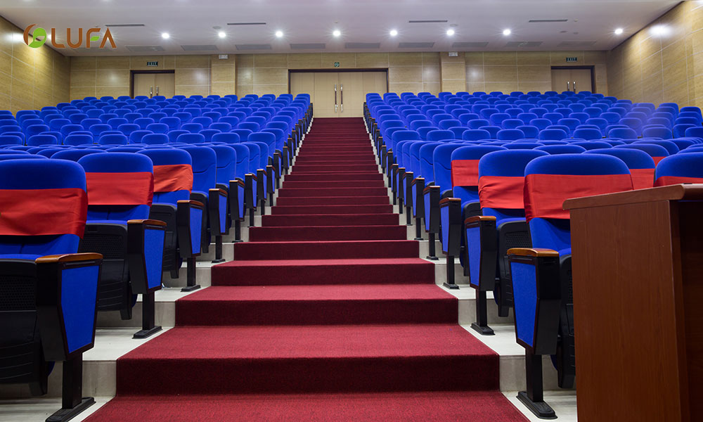 Phòng hội trường rộng rãi được chia làm 2 dãy, bố trí lối đi thông minh thuận tiện cho người tham gia với hệ thống ghê hội trường cao cấp, mang đến một không gian hội trường hoàn toàn choáng ngợp bởi sự sang trọng, sự tinh tế cũng như thể hiện đẳng cấp của một không gian hội trường tuyệt vời nhất.