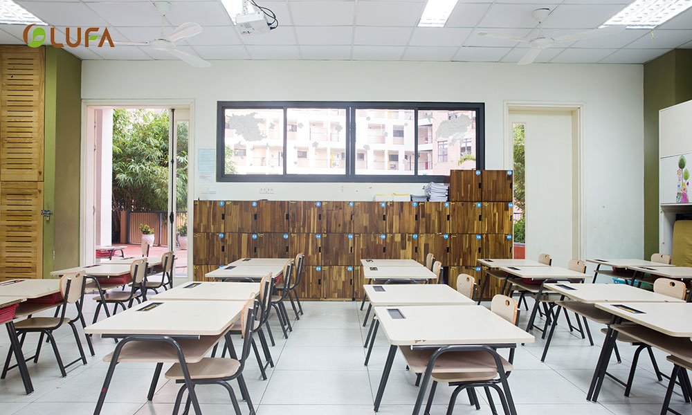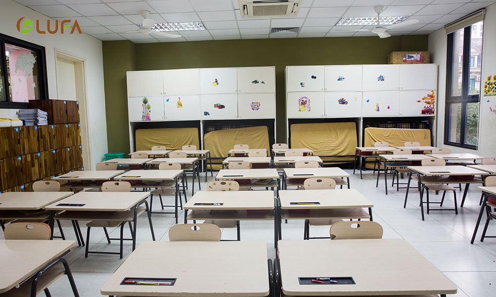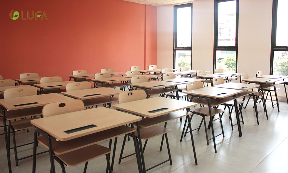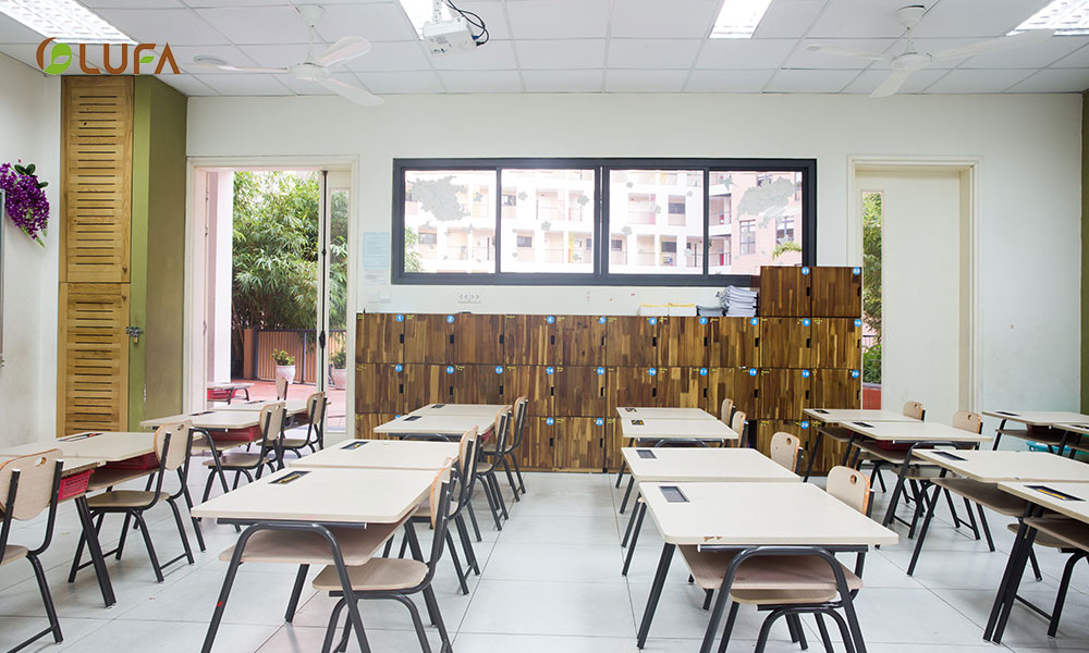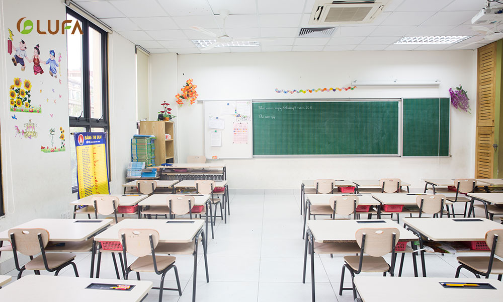 Cơ sở vật chât của trường chất lượng và hiện đại do Nội thất LUFA nhận cung cấp toàn bộ hệ thống bàn ghế giáo viên, văn phòng, đảm bảo yêu cầu học tập và giải trí của học sinh.