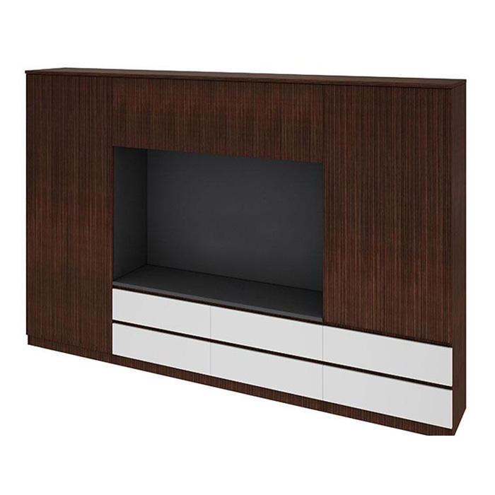 Tủ giám đốc E02-C2400L được làm từ gỗ laminate HP Hàn Quốc, thiết kế gồm khoang cánh bên trái có 3 đợt để tài liệu, khoang cánh bên phải có 1 đợt, có suốt treo quần áo, mặt ngoài dán kính đen 3mm.