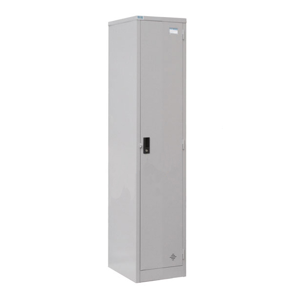 Tủ cao 1 buồng, cánh sắt dài, có lỗ thông hơi. Lòng tủ có 2 đợt cố định, 1 suốt treo mắc áo, khoá locker.