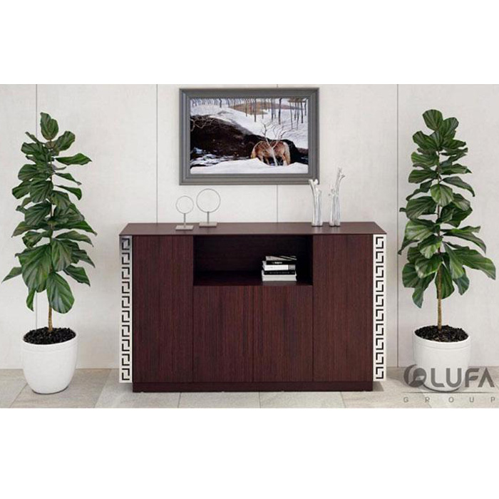 Tủ phụ giám đốc Fami E03-C1848V được làm từ gỗ vereer, phủ sơn PU, hai đầu hồi có tấm inox trang trí, bên trong có da nâu, thiết kế gồm 2 cánh dài có 3 ngăn, 2 cánh ngắn có 2 ngăn để tài liệu.