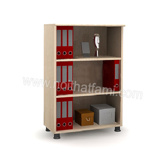 Tủ gỗ đựng tài liệu tầm cao trung bình của nội thất Fami SM7030FH, 3 ngăn 2 đợt. Tủ có 4 chân trụ nhựa cố định vững chắc.