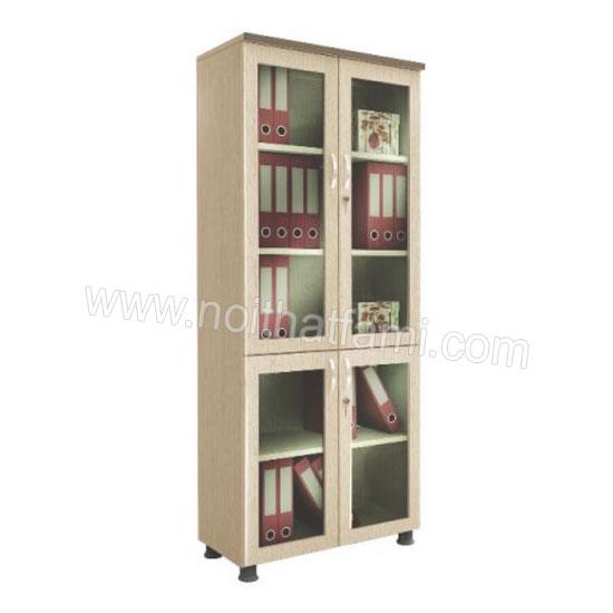 Tủ gỗ đựng tài liệu tầm cao trung bình của nội thất Fami SM9440H, 5 ngăn 3 đợt. Tủ có 4 cánh kính, 2 cánh trên dài, 2 cánh dưới ngắn với 4 tay nắm và 2 khóa chìa.