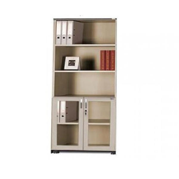 Tủ tài liệu cao SM8650H gỗ công nghiệp MFC cao cấp, phần trên có 3 ngăn không cánh, tủ dưới chia làm 2 ngăn có cánh kính